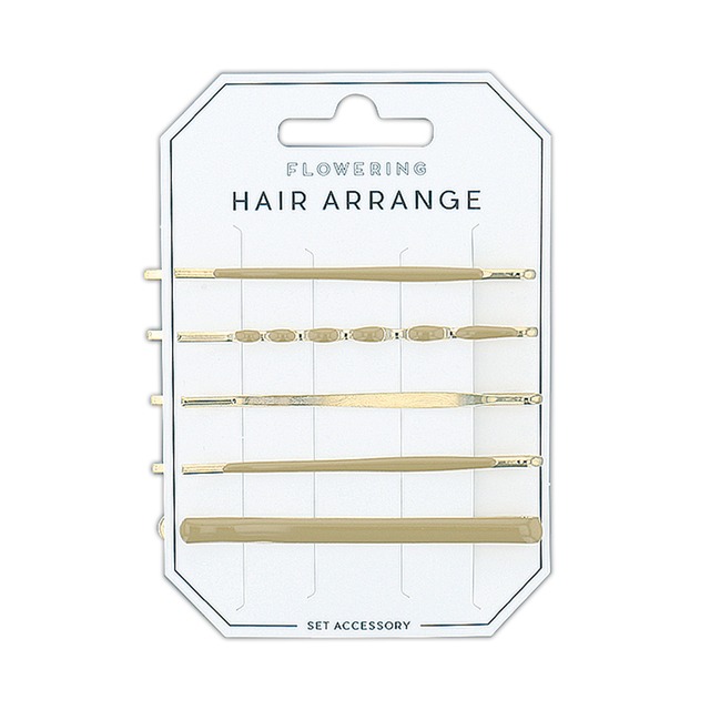 様々なヘアスタイルに使えるヘアピン! 前髪アレンジやお団子スタイルにつけるだけで、いつもと違うヘアアレンジに! < サイズ > 全体(5段目):約2.5cm × 約5.1cm < メーカー型番 > HHP0363-GD < JANコード > 4570017802493 メーカー : FLOWERING(フラワーリング)