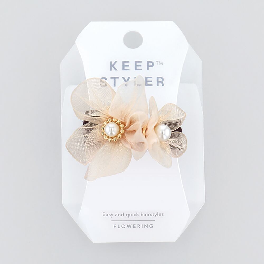 キープスタイラー(ヘアゴム2重タイプ) オーガンジーフラワー HHG1138-BE(ベージュ)