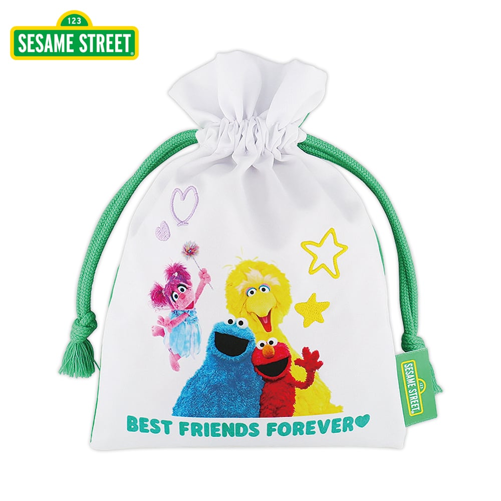 <セサミストリート> 巾着ポーチ クッキーモンスター×エルモ×アビー・カダビー×ビッグバード LSS-P001-GR(グリーン)