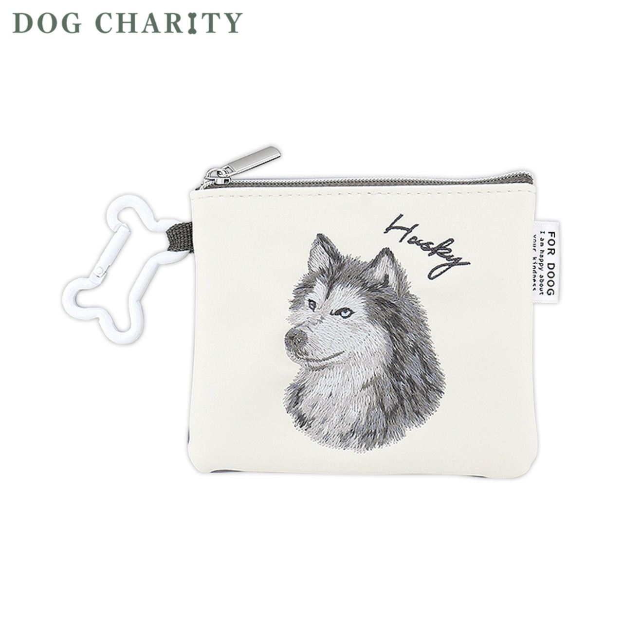 <ドッグチャリティ> フラットポーチ(骨型カラビナ付き) ハスキー GPO0323-R