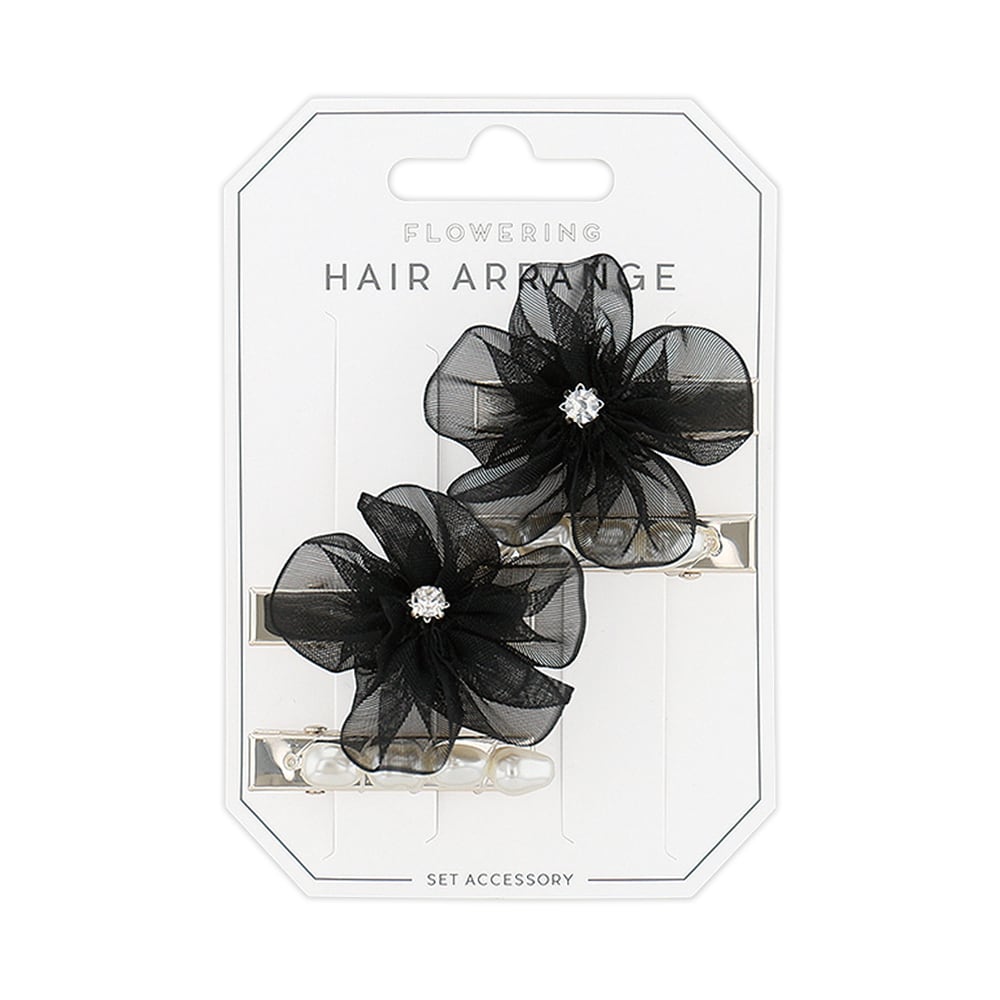 クリップピン(4点セット) オーガンジーフラワー×パール HCP0223-BK(ブラック)