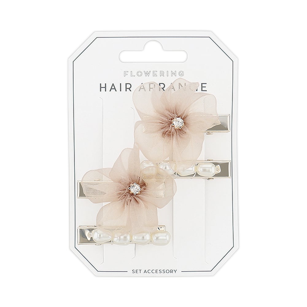 クリップピン(4点セット) オーガンジーフラワー×パール HCP0223-PK(ピンク)