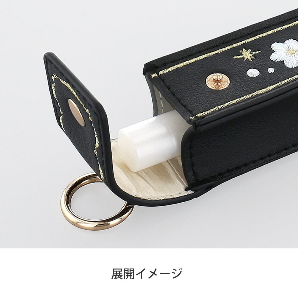 リップがらくらく1本入る大きさで、スナップボタン&カラビナ付きなのでバッグにつけて安心して持ち運べます♪