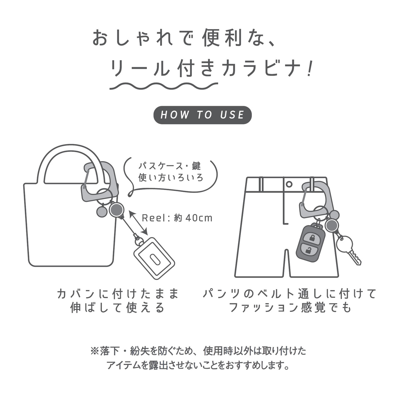 便利なカラビナ付きなので、鍵やパスケースなど取り付けて、毎日一緒に持ち歩けちゃいます♪