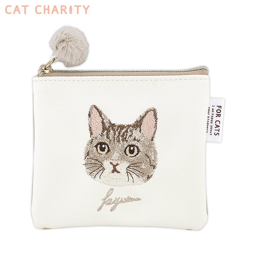 <キャットチャリティ> フラットポーチ(ポンポンチャーム付き) キジトラ GPO0391-B