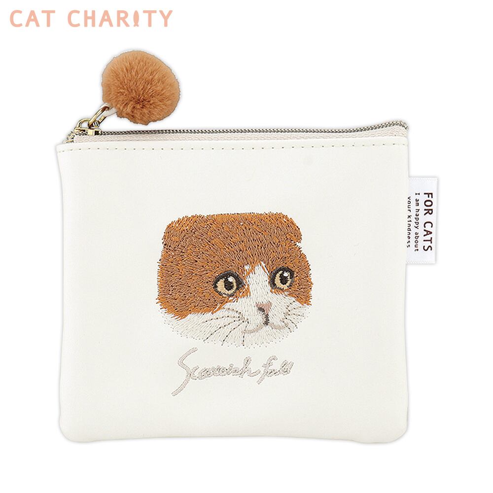 <キャットチャリティ> フラットポーチ(ポンポンチャーム付き) スコティッシュフォールド GPO0391-C