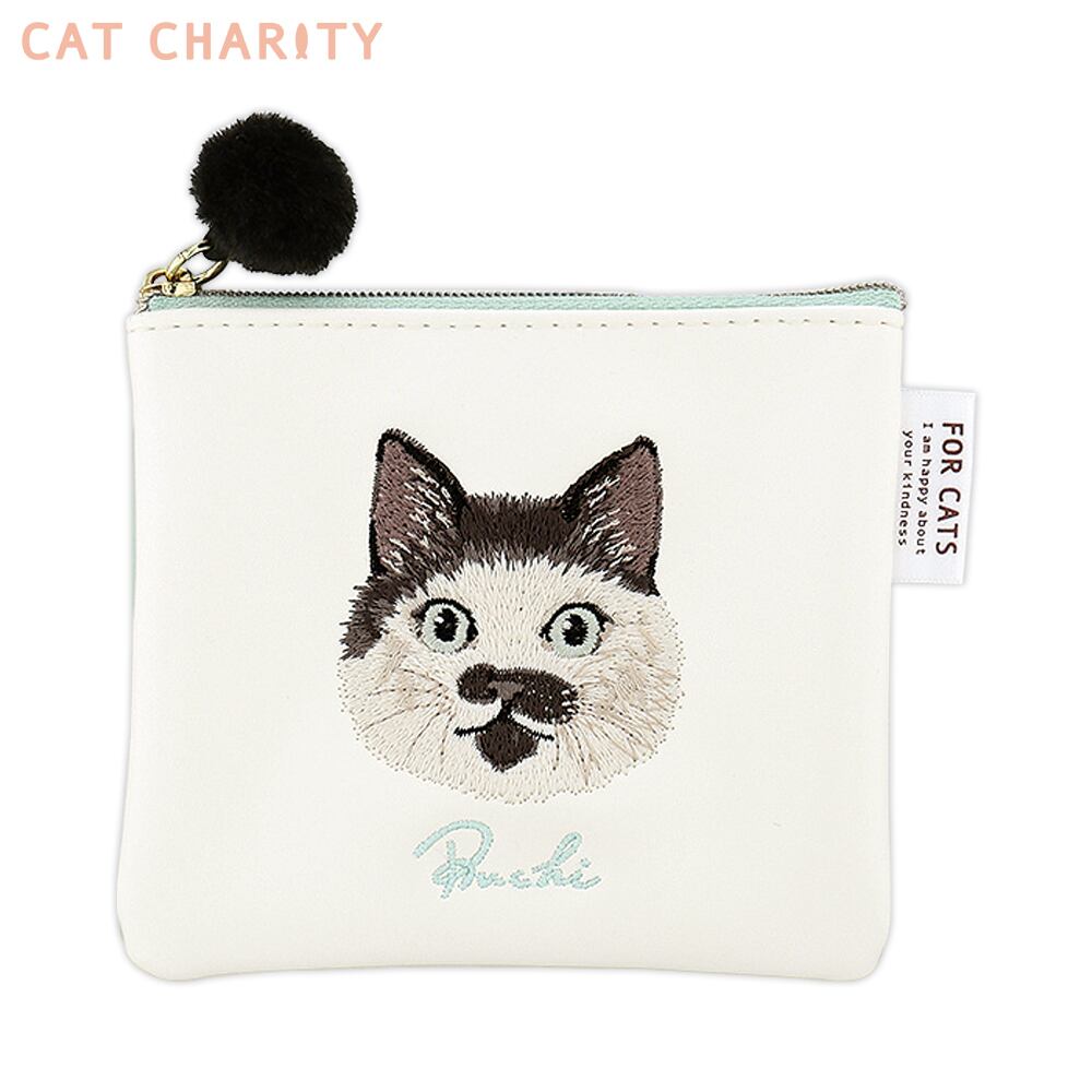 <キャットチャリティ> フラットポーチ(ポンポンチャーム付き) ブチ GPO0391-I