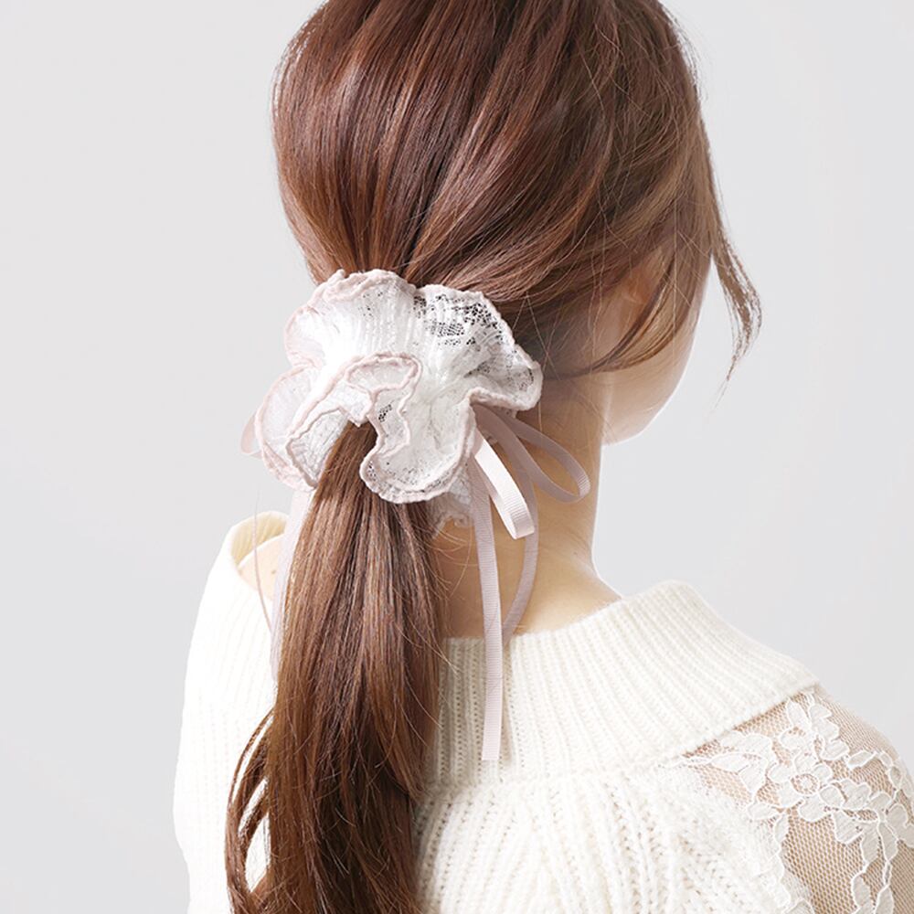 1. 内側にあるヘアゴムパーツを引き、全体を絞ります。