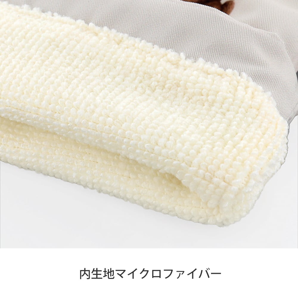 表生地は撥水加工済み、内生地は吸水性の高いマイクロファイバー生地を使用!