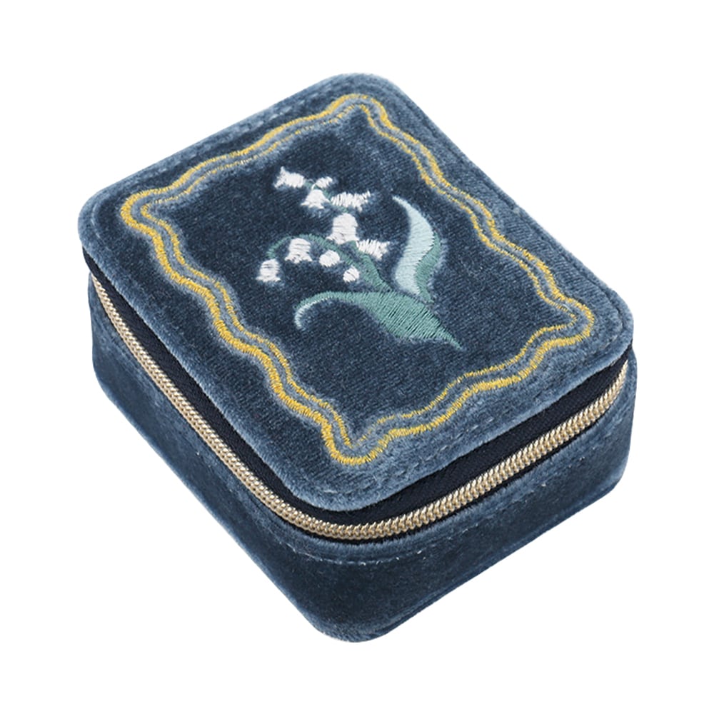ボックスポーチ(アクセサリーポーチ) ベロア×ヴィンテージフラワー GPO0354-BL(ブルー)